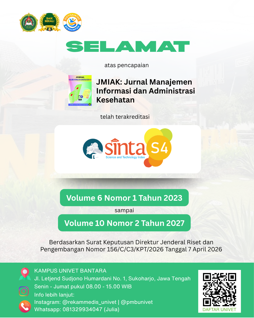 Kenaikan Peringkat Akreditasi dari Sinta 5 menjadi Sinta 4